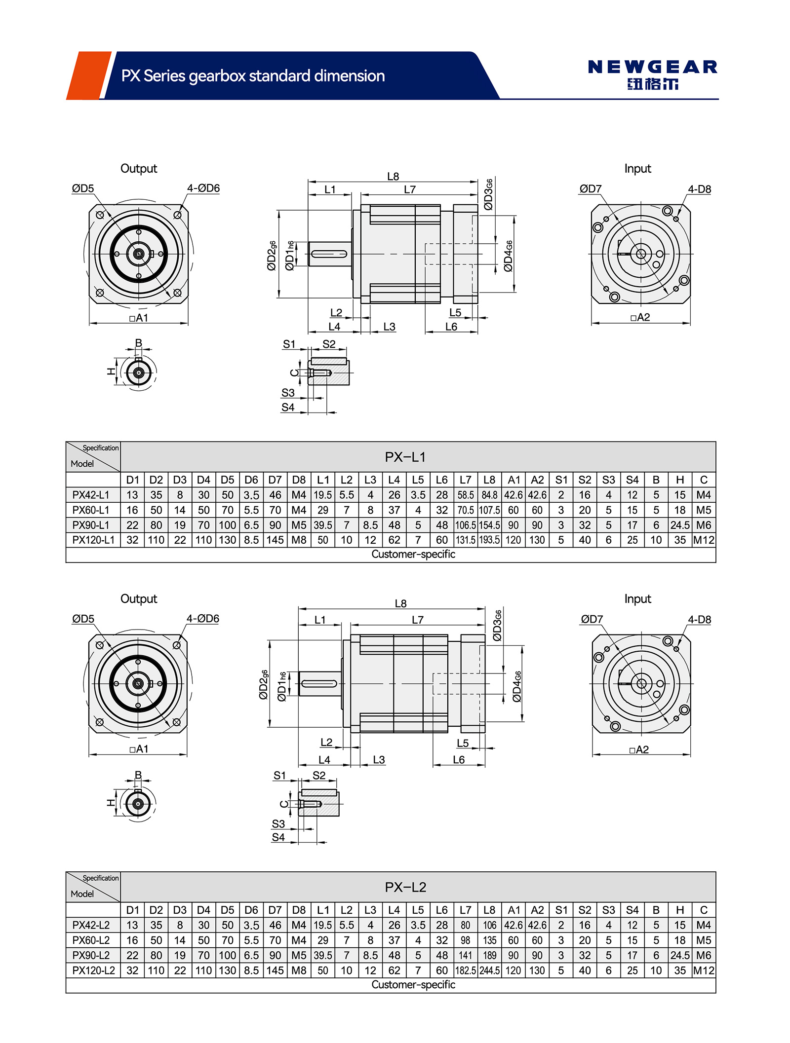 | Parámetros técnicos | Serie de modelos | PX42 | PX60 | PX90 | PX120 | ||