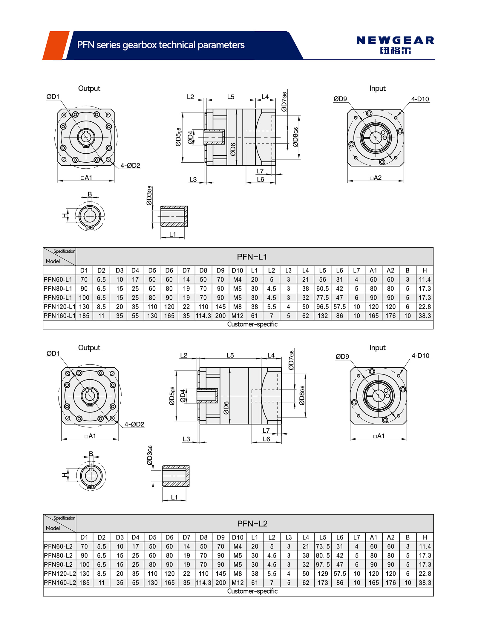 | Parámetros técnicos | Serie de modelos | PFN60 | PFN80 | PFN90 | PFN120 | PFN160 | ||